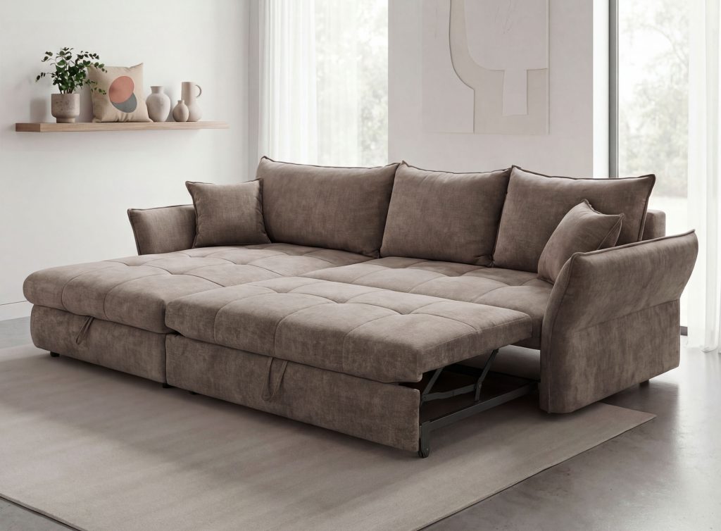 "Delfinas"?„Delfinas“ - ištraukiama apatinė baldo sekcija, tada keliama į viršų ir aukščiu sulyginama su sėdima baldo dalimi. Šis mechanizmas leidžia greitai ir paprastai minkštą kampą išskleisti į miegamą padėtį.