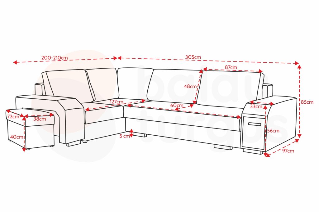 Išmatavimai: A: 85cm P: 305cm G: 200-210cm