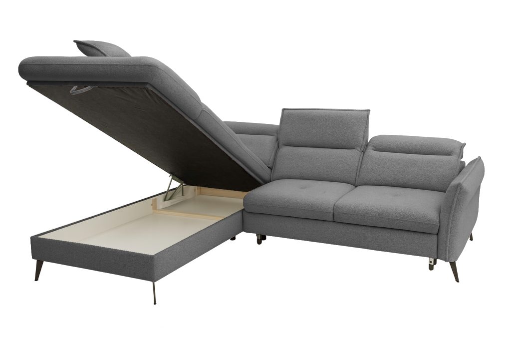 Jeigu vertinate originalų dizainą, modernų stilių ir komfortišką poilsį - neatkreipti dėmesio į Apulla, tiesiog negalite. Popietiniam miegui, kampas pasiūlys miegamą funkciją, daiktams laikyti - erdvę patalynės dėžę (14x89x197cm). 5 reguliuojamos galvos atramos pilnai prisitaikys prie Jūsų poreikių, o dygsniuotas sėdynės paviršius interjerui suteiks grakštų charakterį. Malonus liesti audinys bei aukštos, net 14cm aukščio kojelės, pasitarnaus namuose palaikant švarą.