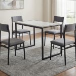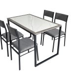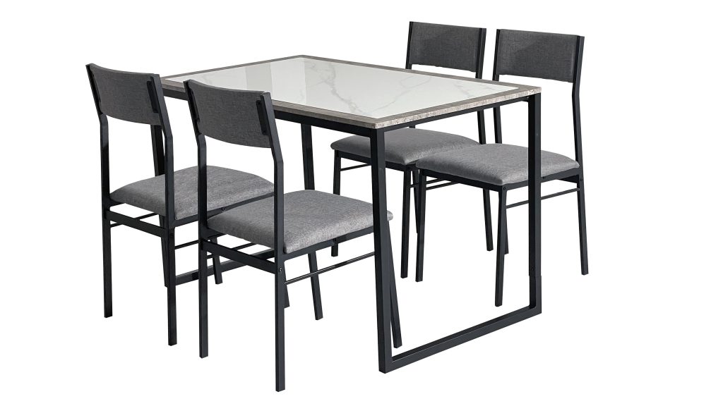 ARNOLD stalas + 4 (I gr.) kėdės (White Marble/#21452-55 Cement/378-26 Pilkas)