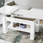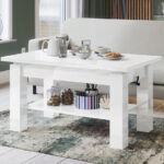 - ASTORIA pakeliamas ir išskleidžiamas staliukas-transformeris (Blizgi balta)