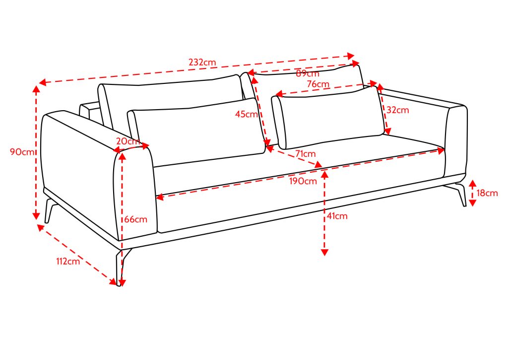 Išmatavimai: A: 90cm P: 232cm G: 112cm