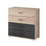 Susipažinkite su minimalistine ir funkcionalia BARI baldų sistema, išsiskiriančia madinga spalvų gamą. Juodos dirbtinės odos elementas ir šviesios medienos derinys suteikia rafinuotą išvaizdą, blizgūs fasadai ir veidrodžiai - optiškai padidina erdvę. Miegamojo komplekte yra viskas ko reikia patogiai ir elegantiškai poilsio vietai sukurti - lova, spinta, komoda, naktinis staliukas bei komoda-indauja.