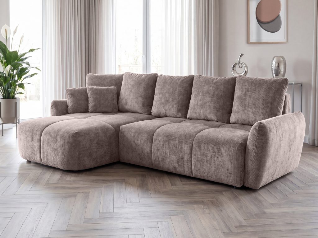 Kairinė pusė?Jeigu stovint veidu į baldą, šezlongas yra kairėje pusėje, tuomet minkštas kampas laikomas kairiniu ir žymimas raide K.