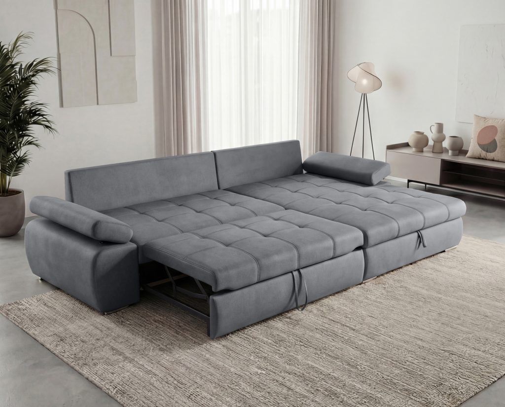 "Delfinas"?„Delfinas“ - ištraukiama apatinė baldo sekcija, tada keliama į viršų ir aukščiu sulyginama su sėdima baldo dalimi. Šis mechanizmas leidžia greitai ir paprastai minkštą kampą išskleisti į miegamą padėtį.