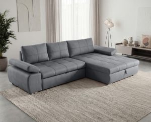 Kairinė pusė?Jeigu stovint veidu į baldą, šezlongas yra kairėje pusėje, tuomet minkštas kampas laikomas kairiniu ir žymimas raide K.