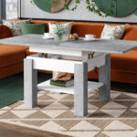 - CLEO pakeliamas ir išskleidžiamas staliukas-transformeris (Beton Millenium/Balta)