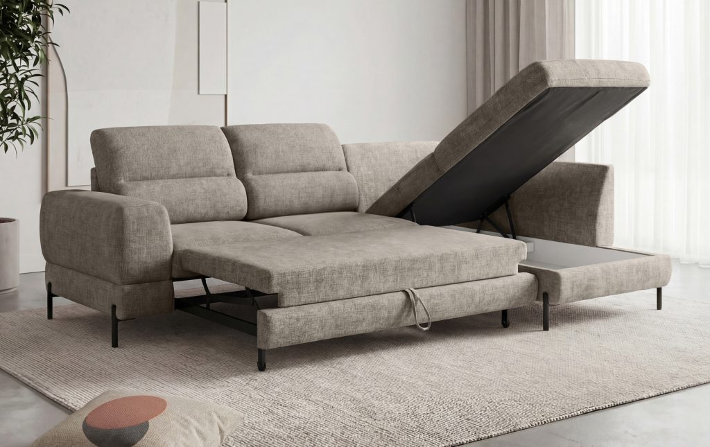 "Delfinas"?„Delfinas“ - ištraukiama apatinė baldo sekcija, tada keliama į viršų ir aukščiu sulyginama su sėdima baldo dalimi. Šis mechanizmas leidžia greitai ir paprastai minkštą kampą išskleisti į miegamą padėtį.