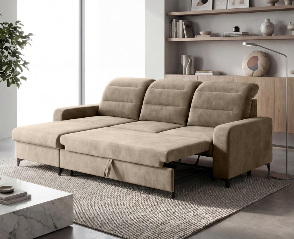 "Delfinas"?„Delfinas“ - ištraukiama apatinė baldo sekcija, tada keliama į viršų ir aukščiu sulyginama su sėdima baldo dalimi. Šis mechanizmas leidžia greitai ir paprastai minkštą kampą išskleisti į miegamą padėtį.