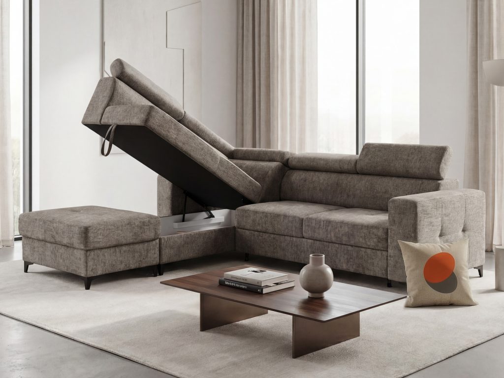 "Delfinas"?„Delfinas“ - ištraukiama apatinė baldo sekcija, tada keliama į viršų ir aukščiu sulyginama su sėdima baldo dalimi. Šis mechanizmas leidžia greitai ir paprastai minkštą kampą išskleisti į miegamą padėtį.