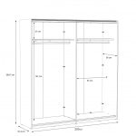 Spintos su apdaila išmatavimai: A: 215cm P: 211cm G: 65cm.