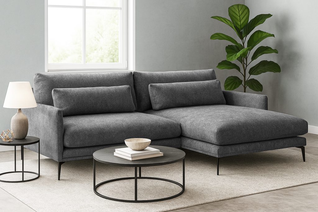 Dešininė pusė?Jeigu stovint veidu į baldą, šezlongas yra dešinėje pusėje, tuomet minkštas kampas laikomas dešininiu ir žymimas raide D.