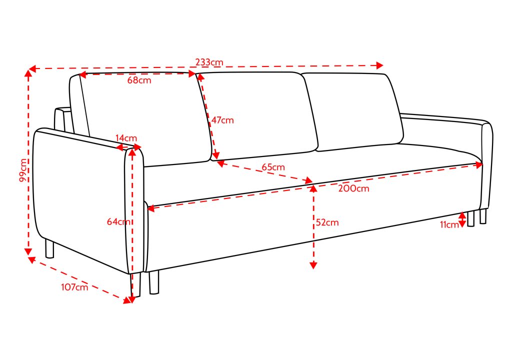 Išmatavimai: A: 99cm P: 233cm G: 107cm