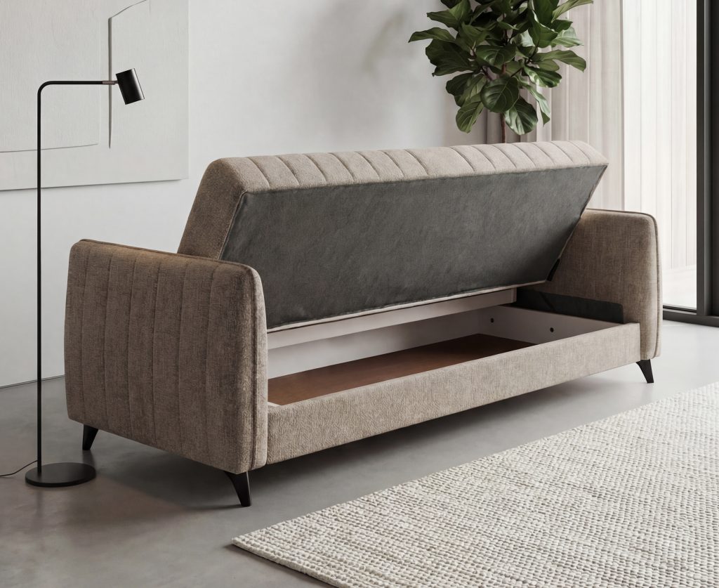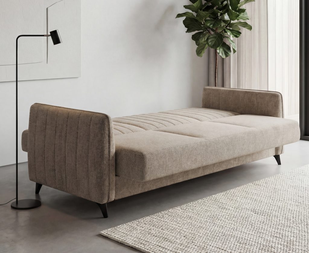 "Click-Clack"?"Click-Clack“ – keliama sėdima dalis tol, kol atsikabina lankstuose esantys specialūs kabliukai ir leidžia išskleisti sofą į miegamą padėtį.