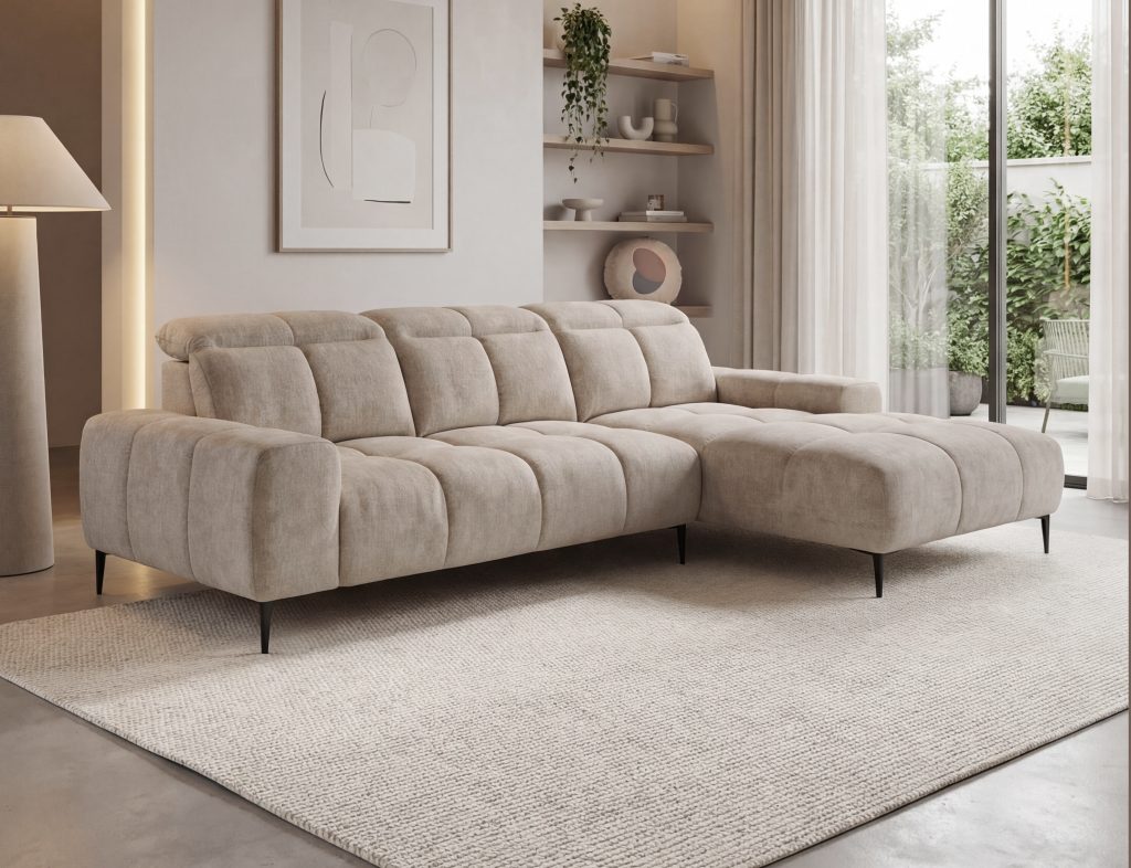 Dešininė pusė?Jeigu stovint veidu į baldą, šezlongas yra dešinėje pusėje, tuomet minkštas kampas laikomas dešininiu ir žymimas raide D.