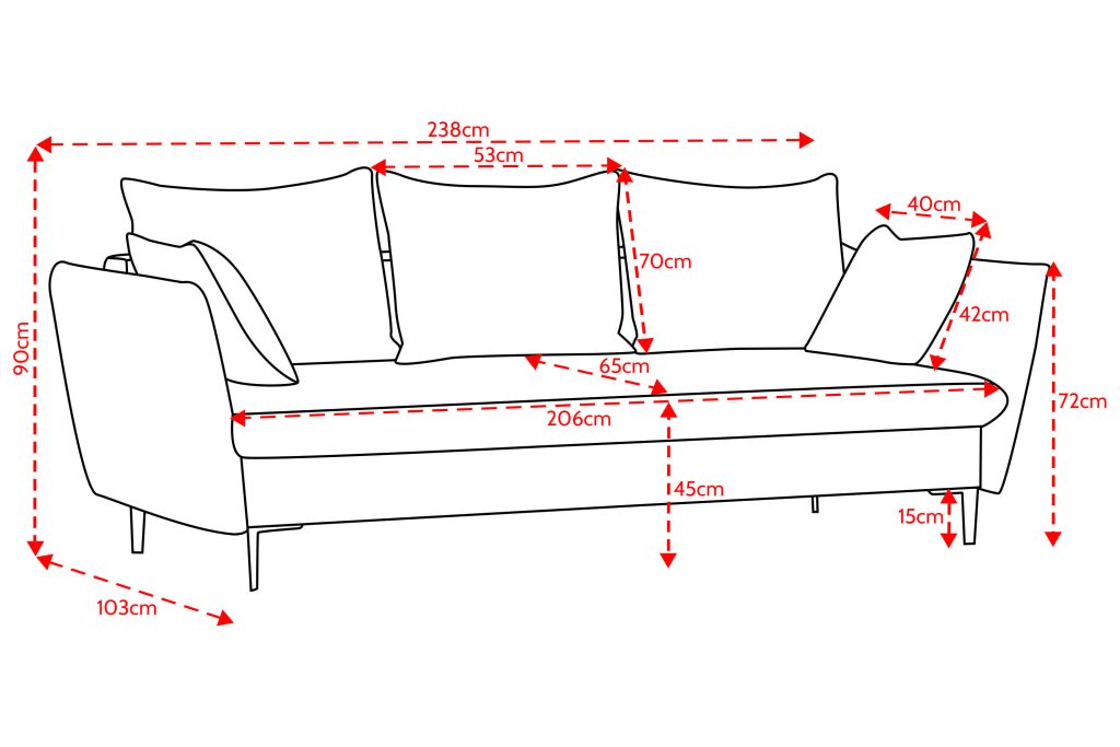 Išmatavimai: A: 91cm P: 238cm G: 90cm