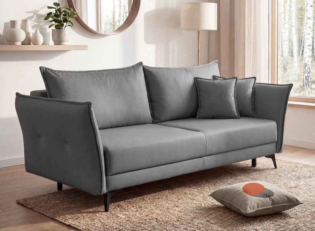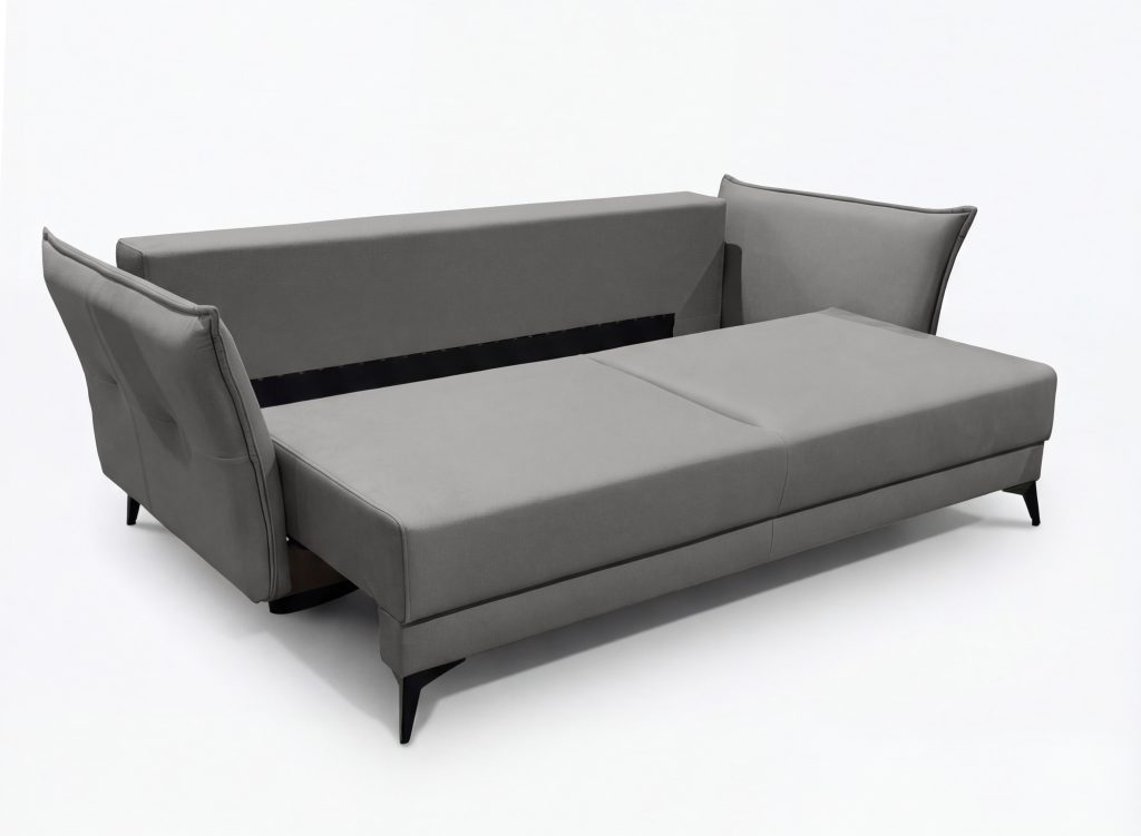 Moderni, glamūro elementais pasižyminti GRANTS sofa-lova puikiai derės šiuolaikiniame interjere. Naudojant padidinto elastingumo HR poroloną ir zigzagines spyruokles, sukurta užtikrinti maksimalų sėdėjimo ir poilsio komfortą. Įmontuotas automatinis mechanizmas leis lengvai išskleisti sofą į miegamą padėtį, o erdvi patalynės dėžė – susidėti tekstilės gaminius ar rečiau naudojamus daiktus. Neįprastą baldo dizainą pabrėžia juodo metalo kojelės. Prabanga dvelkianti sofa-lova GRANTS, neabejotinai taps Jūsų namų puošmena!