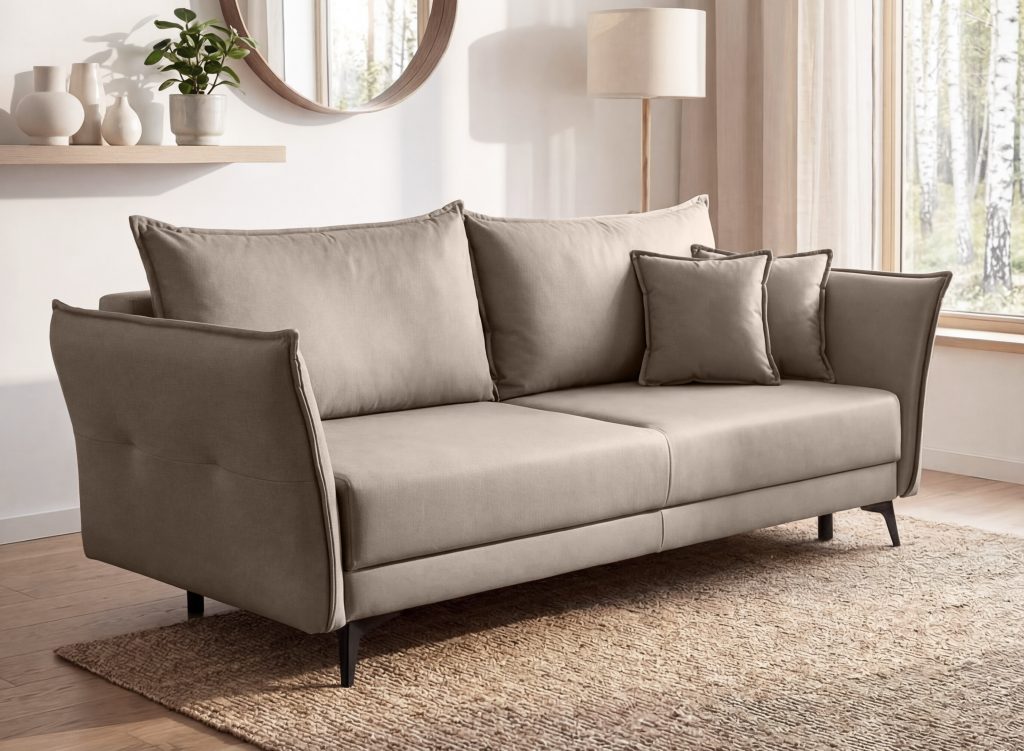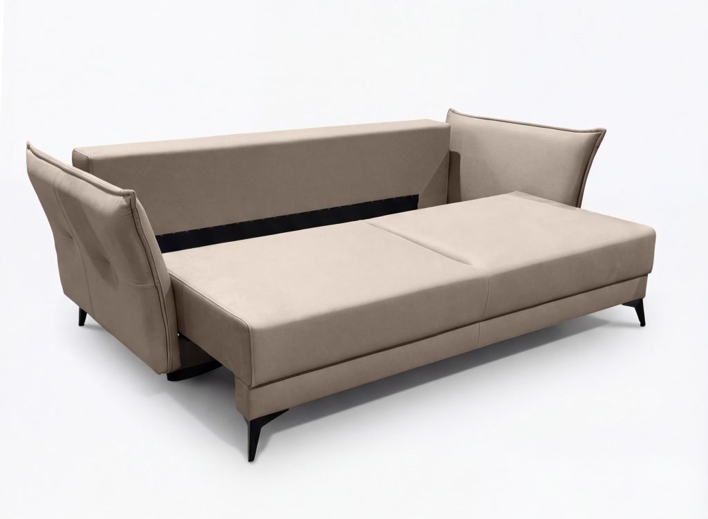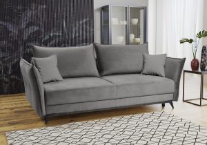 Moderni, glamūro elementais pasižyminti GRANTS sofa-lova puikiai derės šiuolaikiniame interjere. Naudojant padidinto elastingumo HR poroloną ir zigzagines spyruokles, sukurta užtikrinti maksimalų sėdėjimo ir poilsio komfortą. Įmontuotas automatinis mechanizmas leis lengvai išskleisti sofą į miegamą padėtį, o erdvi patalynės dėžė – susidėti tekstilės gaminius ar rečiau naudojamus daiktus. Neįprastą baldo dizainą pabrėžia juodo metalo kojelės. Prabanga dvelkianti sofa-lova GRANTS, neabejotinai taps Jūsų namų puošmena!