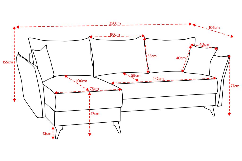 Išmatavimai: A: 83cm P: 267cm G: 167cm