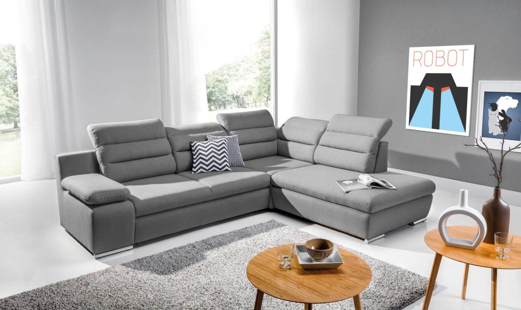 GRECO - šiuolaikinio dizaino minkštas kampas su reguliuojamais galvūgaliais, kuris Jūsų kasdienybėje leis mėgautis aukščiausiu komfortu. Penkios nepriklausomos galvos atramos individualiai fiksuojamos skirtingose padėtyse! GRECO tiks net ir nedidelėje svetainėje - baldas turi be didelių pastangų išskleidžiamą miegamą mechanizmą ir erdvią, patogią naudojimui patalynės dėžę. Chromuoto metalo kojelės, tai subtili detalė, pabrėžianti modernų baldo dizainą.