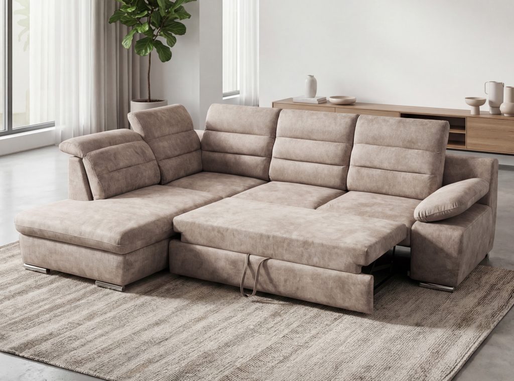 "Delfinas"?„Delfinas“ - ištraukiama apatinė baldo sekcija, tada keliama į viršų ir aukščiu sulyginama su sėdima baldo dalimi. Šis mechanizmas leidžia greitai ir paprastai minkštą kampą išskleisti į miegamą padėtį.