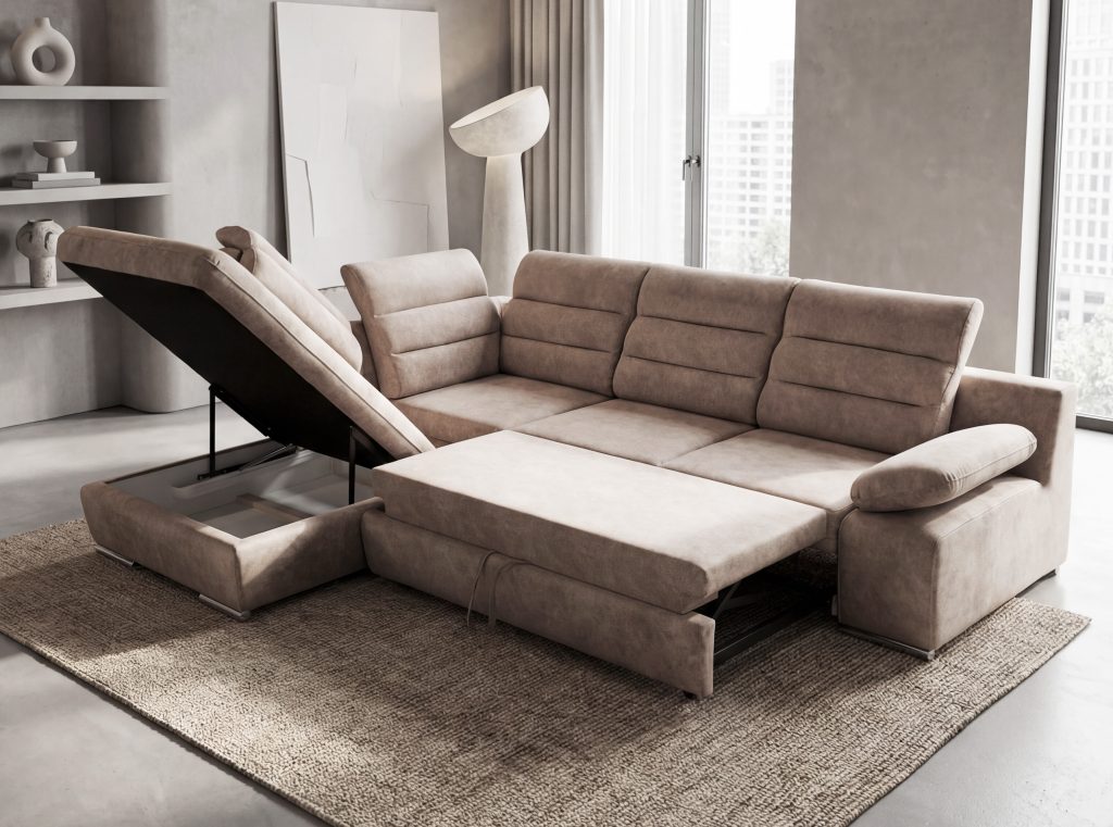 GRECO - šiuolaikinio dizaino minkštas kampas su reguliuojamais galvūgaliais, kuris Jūsų kasdienybėje leis mėgautis aukščiausiu komfortu. Penkios nepriklausomos galvos atramos individualiai fiksuojamos skirtingose padėtyse! GRECO tiks net ir nedidelėje svetainėje - baldas turi be didelių pastangų išskleidžiamą miegamą mechanizmą ir erdvią, patogią naudojimui patalynės dėžę. Chromuoto metalo kojelės, tai subtili detalė, pabrėžianti modernų baldo dizainą.