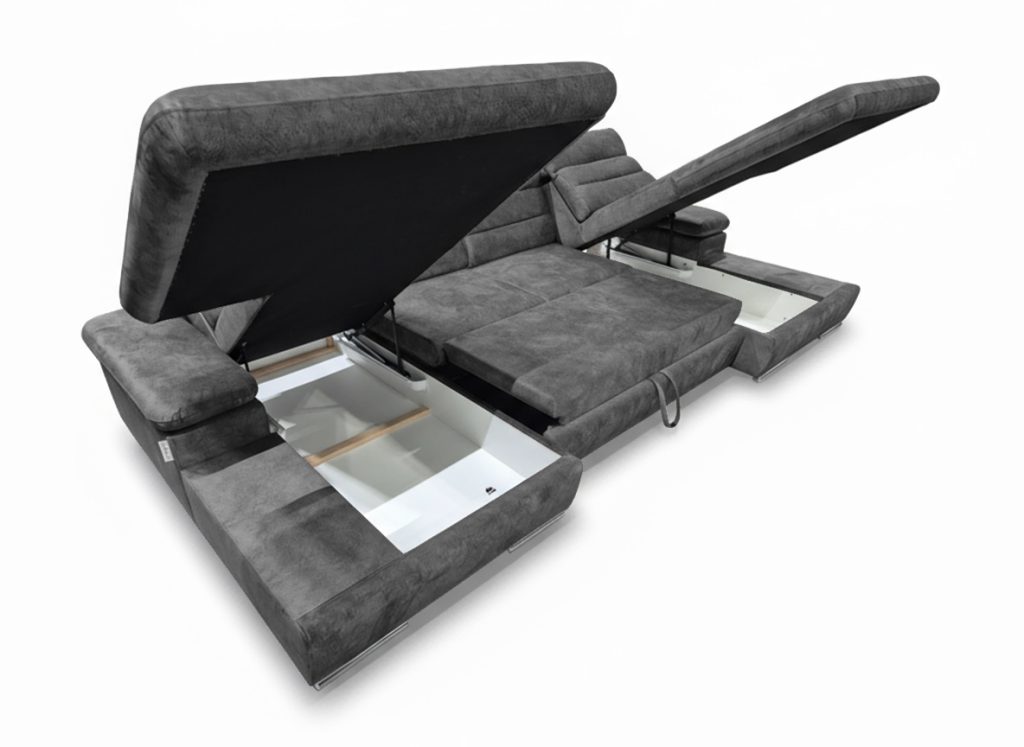 „Delfinas“ - ištraukiama apatinė baldo sekcija, tada keliama į viršų ir aukščiu sulyginama su sėdima baldo dalimi. Šis mechanizmas leidžia greitai ir paprastai minkštą kampą išskleisti į miegamą padėtį.