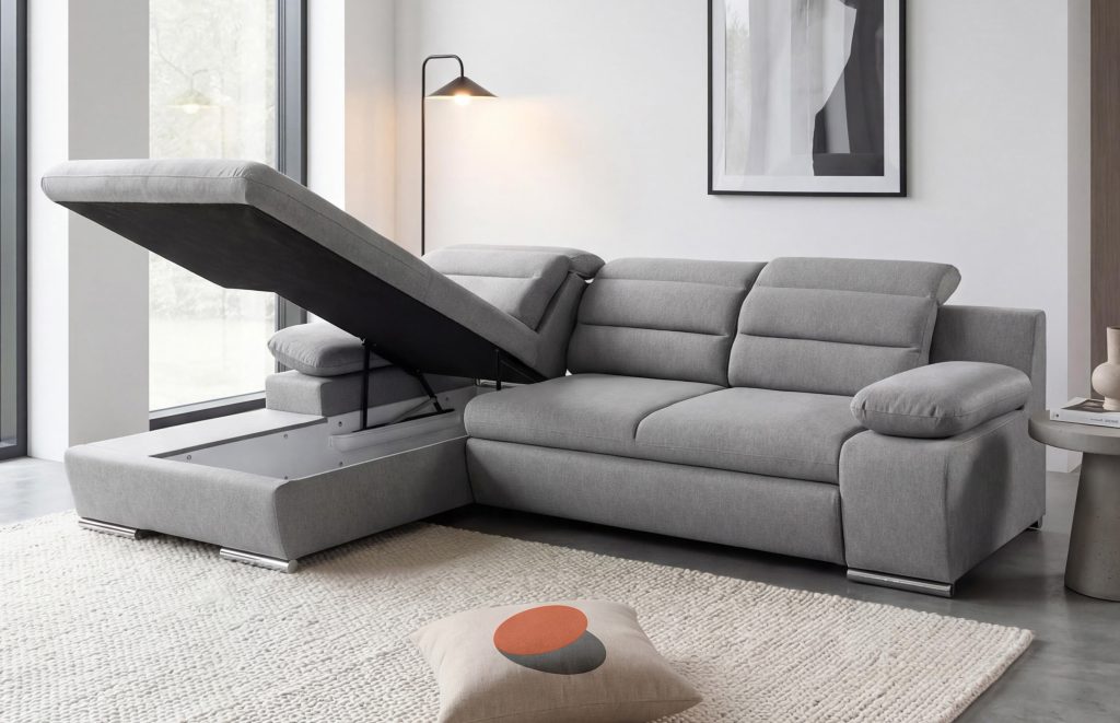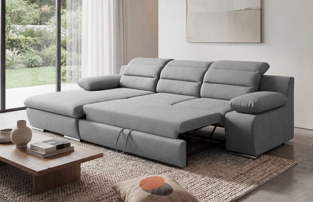 "Delfinas"?„Delfinas“ - ištraukiama apatinė baldo sekcija, tada keliama į viršų ir aukščiu sulyginama su sėdima baldo dalimi. Šis mechanizmas leidžia greitai ir paprastai minkštą kampą išskleisti į miegamą padėtį.
