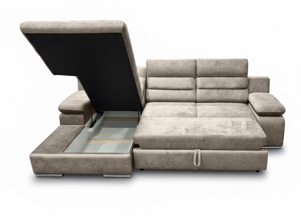 Kairinė pusė?Jeigu stovint veidu į baldą, šezlongas yra kairėje pusėje, tuomet minkštas kampas laikomas kairiniu ir žymimas raide K.