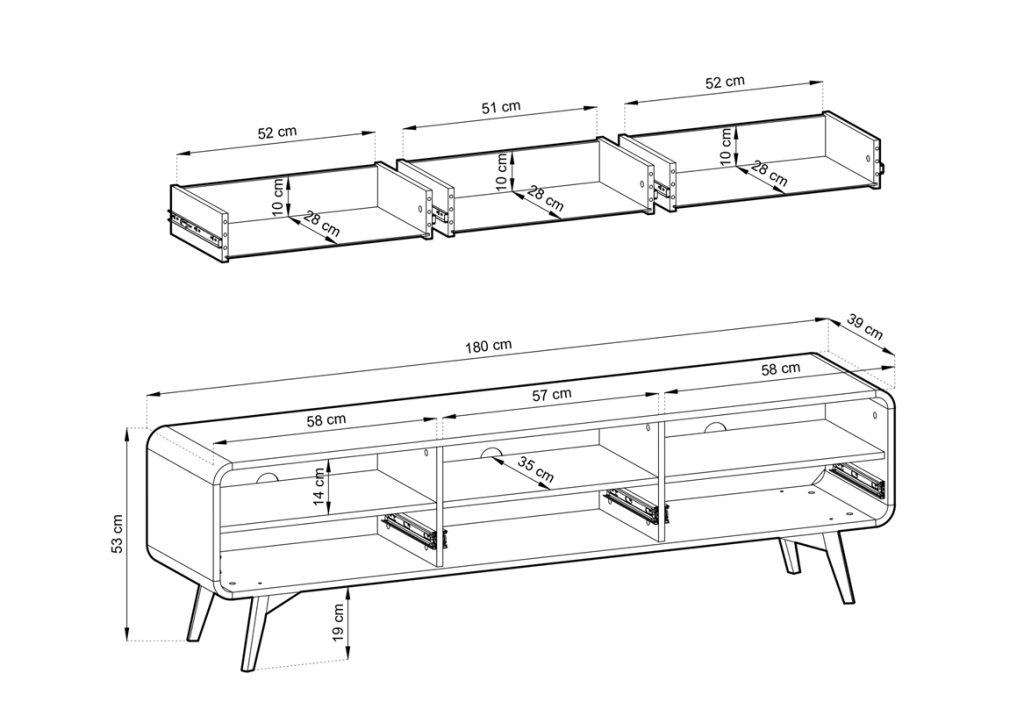 TV komoda: A: 51cm P: 165cm G: 40cm
