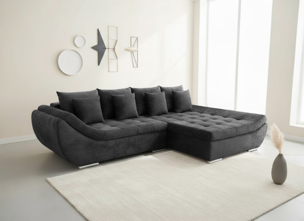 Dešininė pusė?Jeigu stovint veidu į baldą, šezlongas yra dešinėje pusėje, tuomet minkštas kampas laikomas dešininiu ir žymimas raide D.