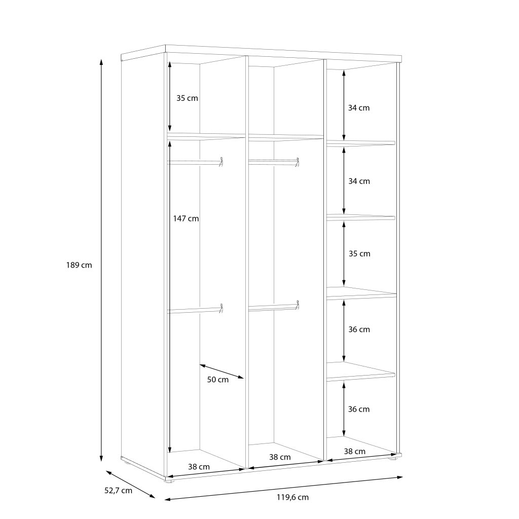 Išmatavimai: A: 189cm P: 120cm G: 53cm