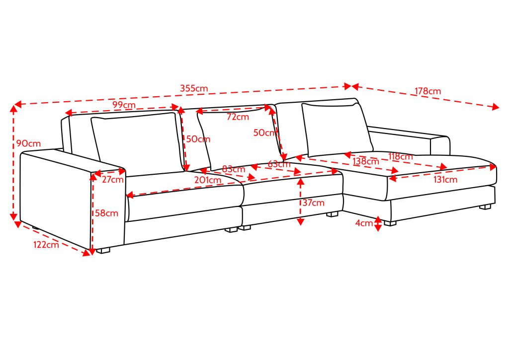 Išmatavimai: A: 90cm P: 355cm G: 178cm