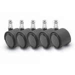 Komplektą sudaro 5vnt. gumuotų ratukų, skirtų biuro kėdei. Kaučiukiniai ratukai nebraižo grindų paviršiaus, lyginant su plastikiniais, tarnauja žymiai ilgesnį laiką.