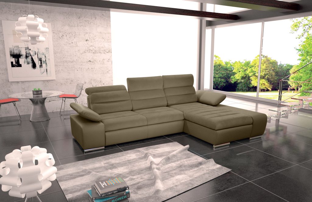 KORFU – tai modernaus dizaino minkštas kampas su miegojimo mechanizmu bei patalynės dėže. Baldas ypatingai patogus dėl savo konstrukcijos, kur tiek porankiai, tiek galvūgaliai yra reguliuojami ir juos galima fiksuoti net keliomis pozicijomis. Kokybiški audiniai, įsiuvai bei chromuoto metalo kojelės suteikia baldui išskirtinę išvaizdą. KORFU minkštas kampas savyje jungia kokybę, komfortą bei išskirtinį ir modernų dizainą.