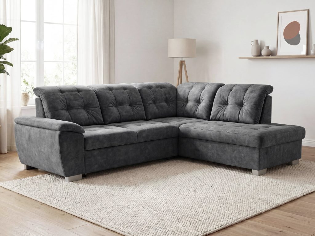Dešininė pusė?Jeigu stovint veidu į baldą, šezlongas yra dešinėje pusėje, tuomet minkštas kampas laikomas dešininiu ir žymimas raide D.