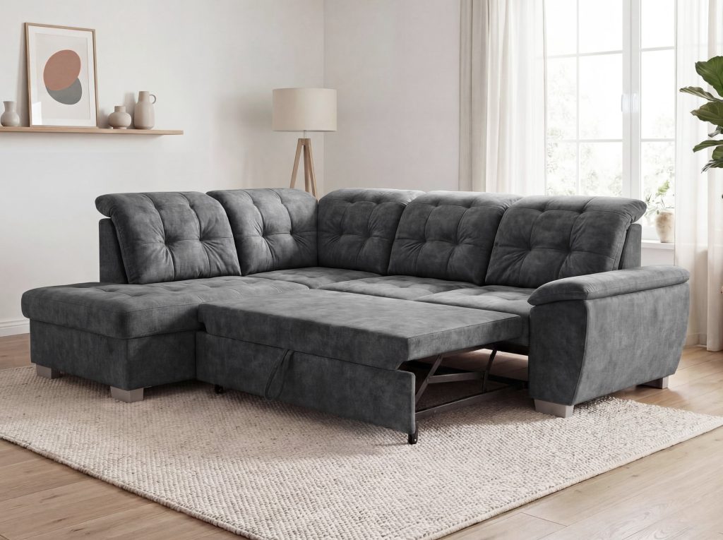 "Delfinas"?„Delfinas“ - ištraukiama apatinė baldo sekcija, tada keliama į viršų ir aukščiu sulyginama su sėdima baldo dalimi. Šis mechanizmas leidžia greitai ir paprastai minkštą kampą išskleisti į miegamą padėtį.