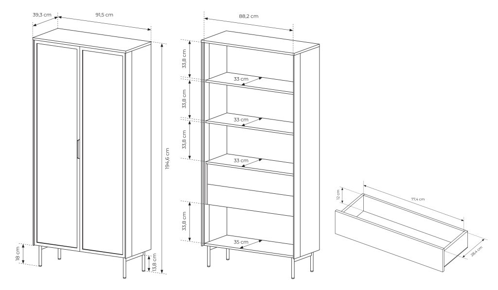 Išmatavimai: A: 195cm P: 92cm G: 39cm