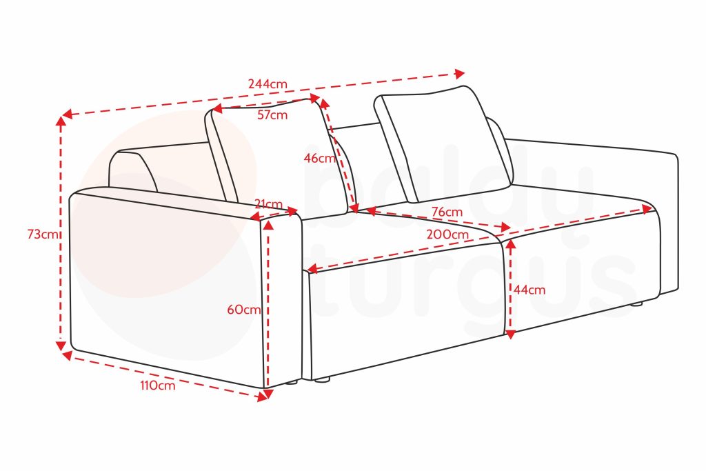 Išmatavimai: A: 73cm P: 244cm G: 110cm