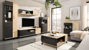MADISON ST-06 vitrina (Juoda/Dab biszkoptowy)