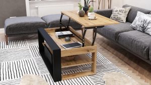 FRAME pakeliamas ir išskleidžiamas staliukas-transformeris su daiktadėže (Beton/Juoda)