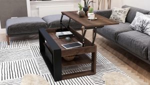 FRAME pakeliamas ir išskleidžiamas staliukas-transformeris su daiktadėže (Ruda/Juoda)