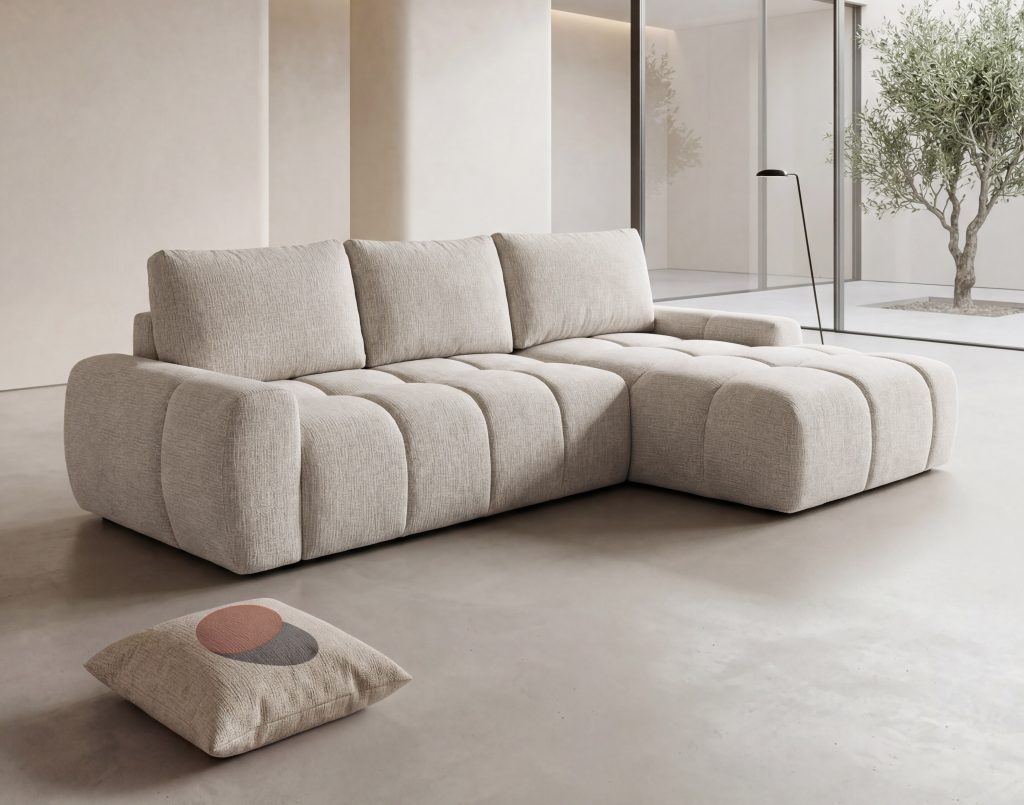 Dešininė pusė?Jeigu stovint veidu į baldą, šezlongas yra dešinėje pusėje, tuomet minkštas kampas laikomas dešininiu ir žymimas raide D.