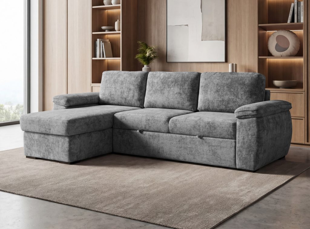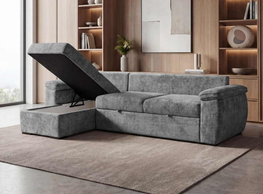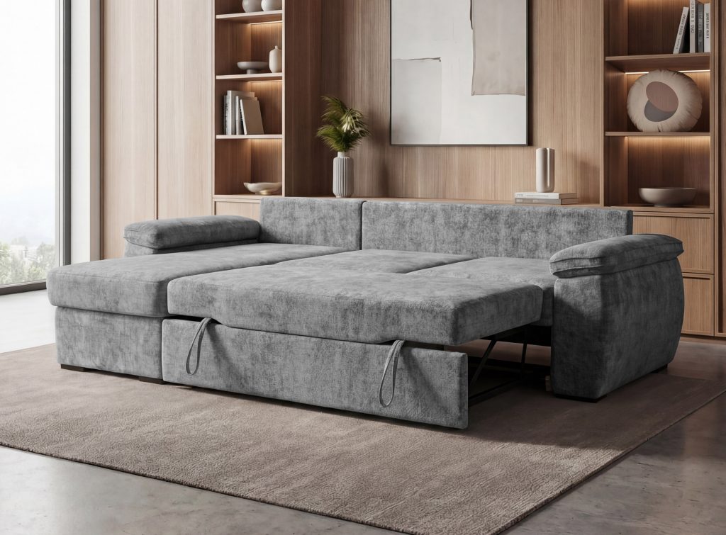 "Delfinas"?„Delfinas“ - ištraukiama apatinė baldo sekcija, tada keliama į viršų ir aukščiu sulyginama su sėdima baldo dalimi. Šis mechanizmas leidžia greitai ir paprastai minkštą kampą išskleisti į miegamą padėtį.