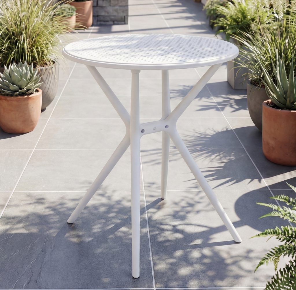 - MEDAL apvalus plastikinis lauko stalas (Baltas)