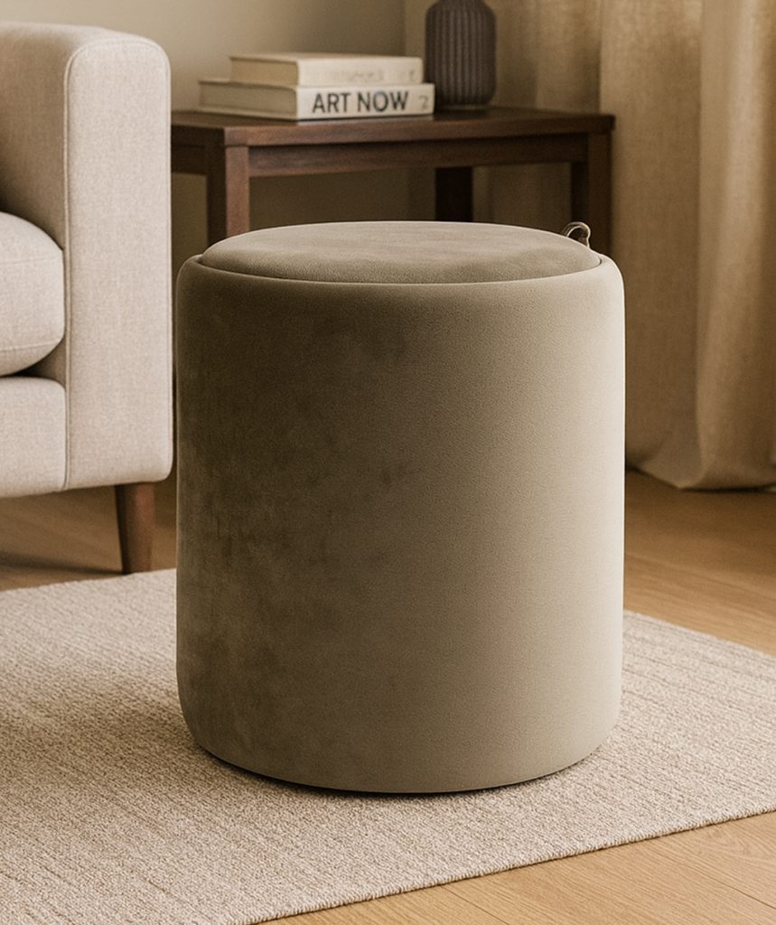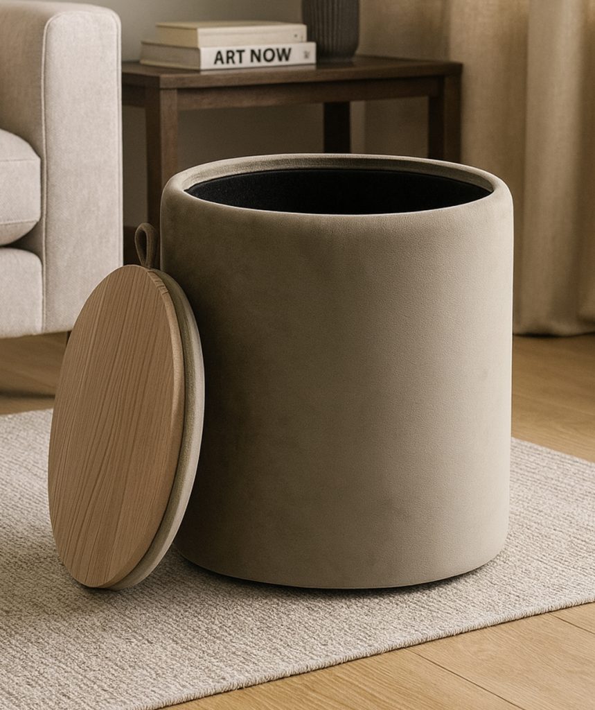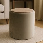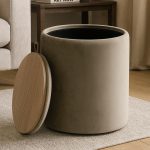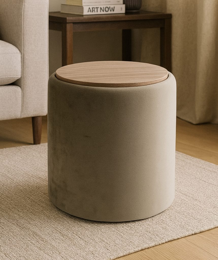 MELLIX (II gr.) apvalus pufas su padėklu (Velvet #11 Šviesiai rudas)