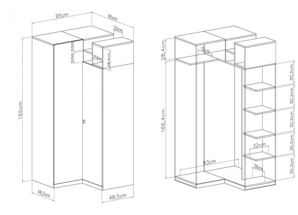 Išmatavimai: A: 195cm P: 95cm G: 95cm