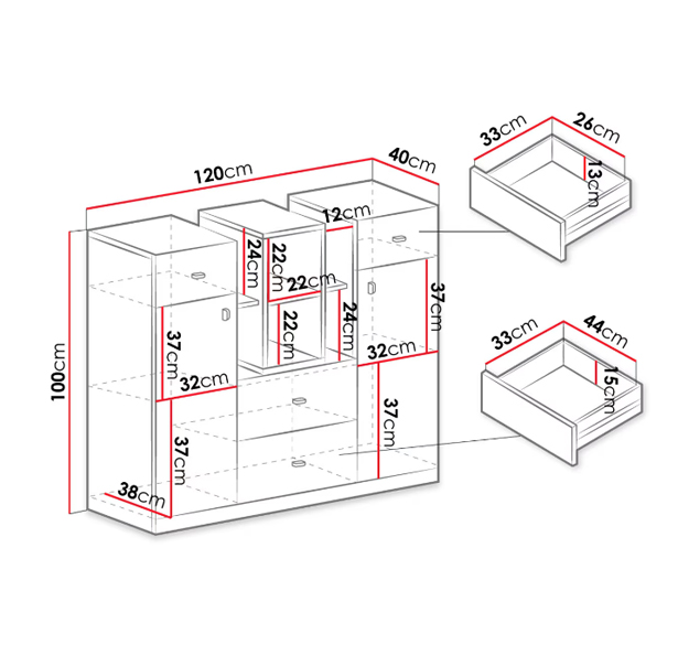 Išmatavimai: A: 80cm P: 120cm G: 44cm
