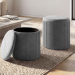 MONTEX (II gr.) apvalių pufų komplektas (2vnt.) (Velvet #18 Pilkas)