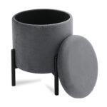 MELLIX (II gr.) apvalus pufas su padėklu (Velvet #18 Pilkas)